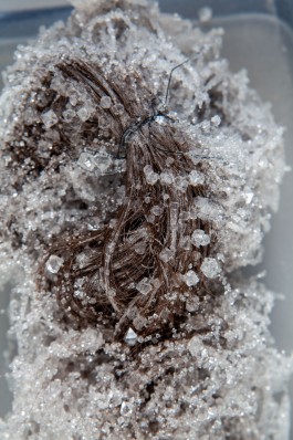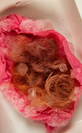 Fotodokumentation Detail, Serie, Salzkristalle auf Perücke, 20 × 35 cm, 2019
