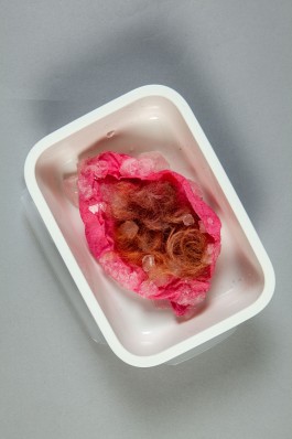 Fotodokumentation, Serie, Salzkristalle auf Haaren, Tupperdose, 33 × 15cm, 2019