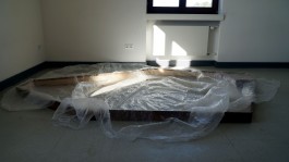 Installationsansicht, eingesperrter Putzroboter, Zimmerleisten,